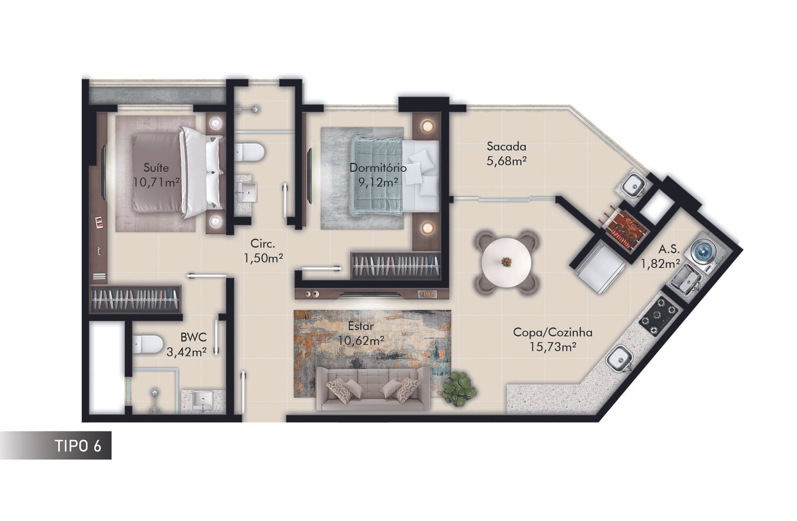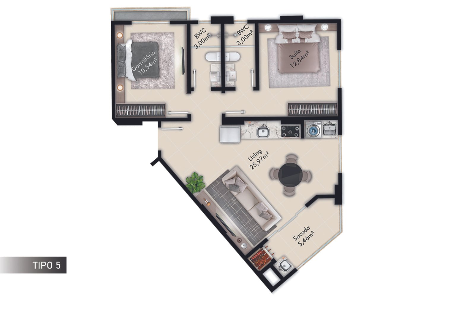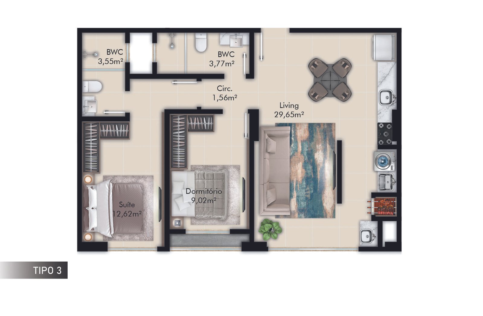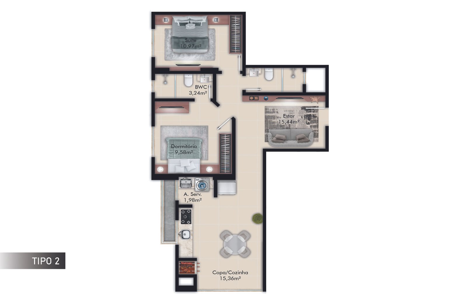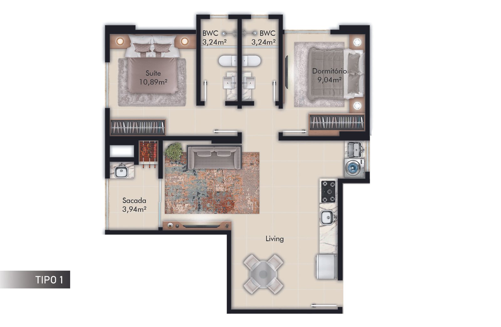 1 Suíte+1 Dormitório