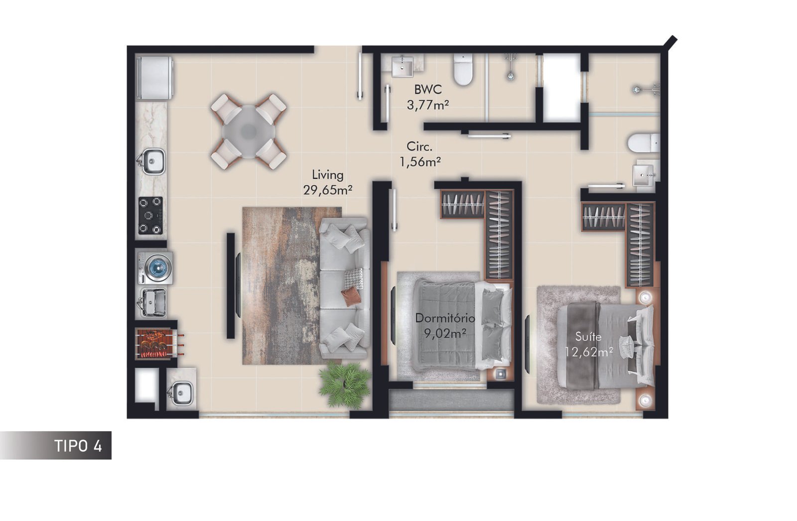1 Suíte+1 Dormitório
